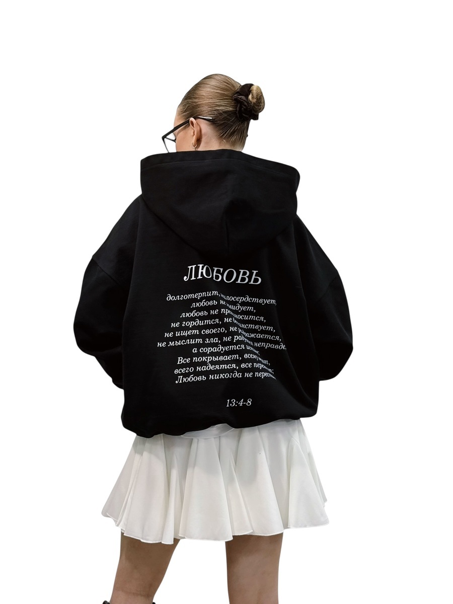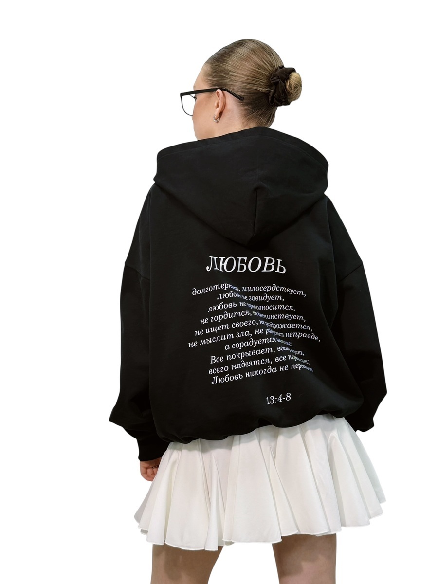 Ткань: 100% хлопок, 420 грамм – мягкая и приятная на ощупь Крой: обновленный крой – умеренный oversize Дизайн: принт на спине выполнен качественной ДТФ печатью Карманы: боковые карманы Молния: качественная фурнитура из пластика – устойчива к влаге и перепадам температуры *продукт может незначительно отличаться от макета**отправка производится только в рабочие дни